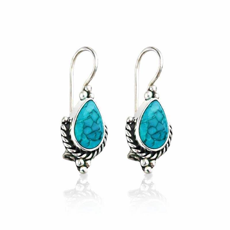 O brinco gancho gota turquesa em Prata Bali 925 transmite frescor, leveza e personalidade.
