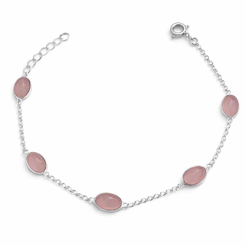 A pulseira oval de quartzo rosa em Prata 925 combina suavidade, elegância e ótimo desempenho comercial.